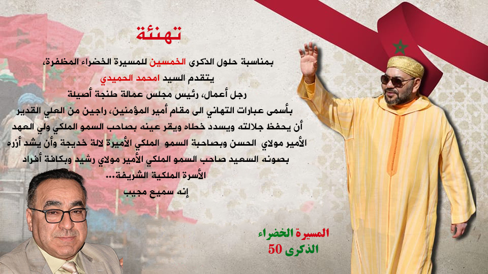الرئيسية/تهنئة المسيرة الخضراء 2025/السيد “امحمد الحميدي” يهنئ جلالة الملك بمناسبة الذكرى الخمسين للمسيرة الخضراء المظفرة السيد “امحمد الحميدي” يهنئ جلالة الملك بمناسبة الذكرى الخمسين للمسيرة الخضراء المظفرة ميدنيوز نوفمبر 6, 2025 4٬331 نوفمبر 6, 2025 4٬331 شاركها فيسبوك X ماسنجر ماسنجر واتساب تيلقرام طباعة