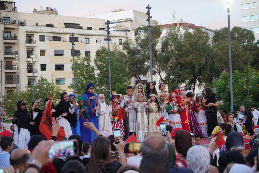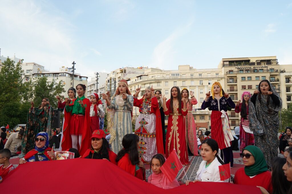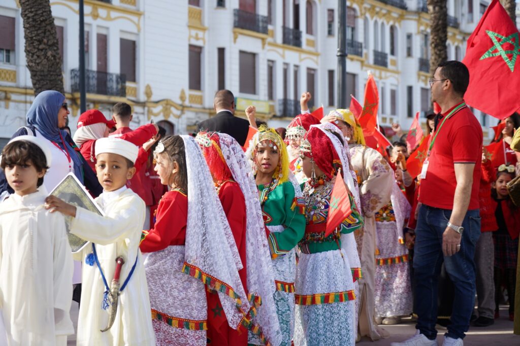 تحولت ساحة الأمم إلى فضاء للإبداع والاحتفال، حيث قدمت الفرق المشاركة عروضاً فنية ولوحات وطنية أبدع فيها الأطفال والتلاميذ في رسم مشاهد رمزية للمسيرة الخضراء، مزينة بالأعلام المغربية وصور جلالة الملكين محمد السادس والحسن الثاني، فيما أبدعت الفرق الفلكلورية في تجسيد التنوع الثقافي من شمال المملكة إلى صحرائها الغالية.