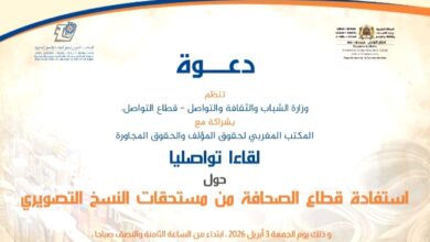 تستعد وزارة الشباب والثقافة والتواصل – قطاع التواصل، بشراكة مع المكتب المغربي لحقوق المؤلف والحقوق المجاورة، لتنظيم لقاء تواصلي موجه…